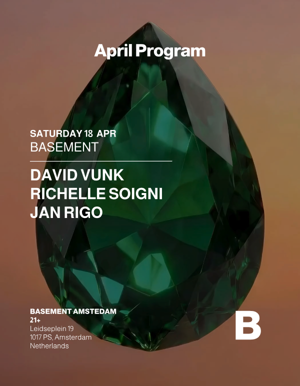 Experience an intimate underground club night at Basement in Amsterdam. Featuring a stellar lineup with David Vunk, Richelle Soigni, and Jan Rigo, this night promises a blend of house, disco, and high-energy electronic beats right at Leidseplein.