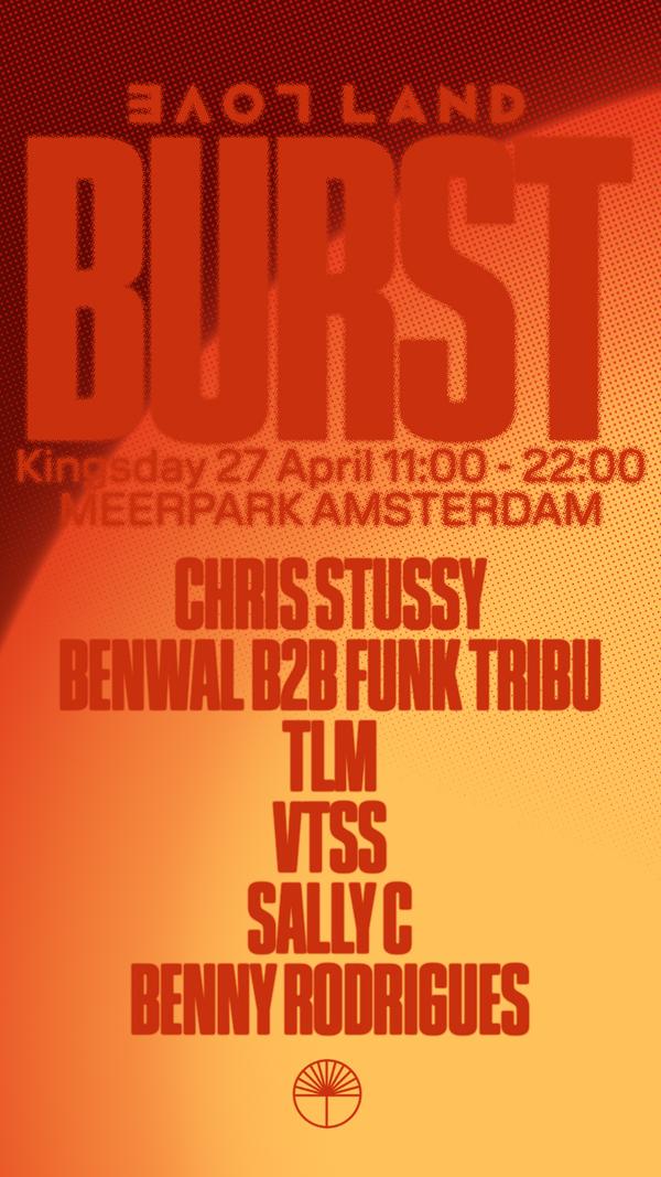 Experience pure collective energy at BURST 2026 this Kingsday! Hosted by Loveland at Meerpark, Amsterdam, this 11-hour open-air festival features top-tier house and trance acts like Chris Stussy, VTSS, and a special Benwal b2b Funk Tribu set. Join the ultimate daytime dance movement.