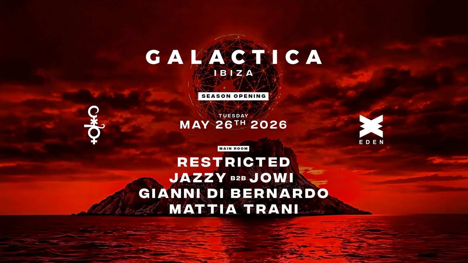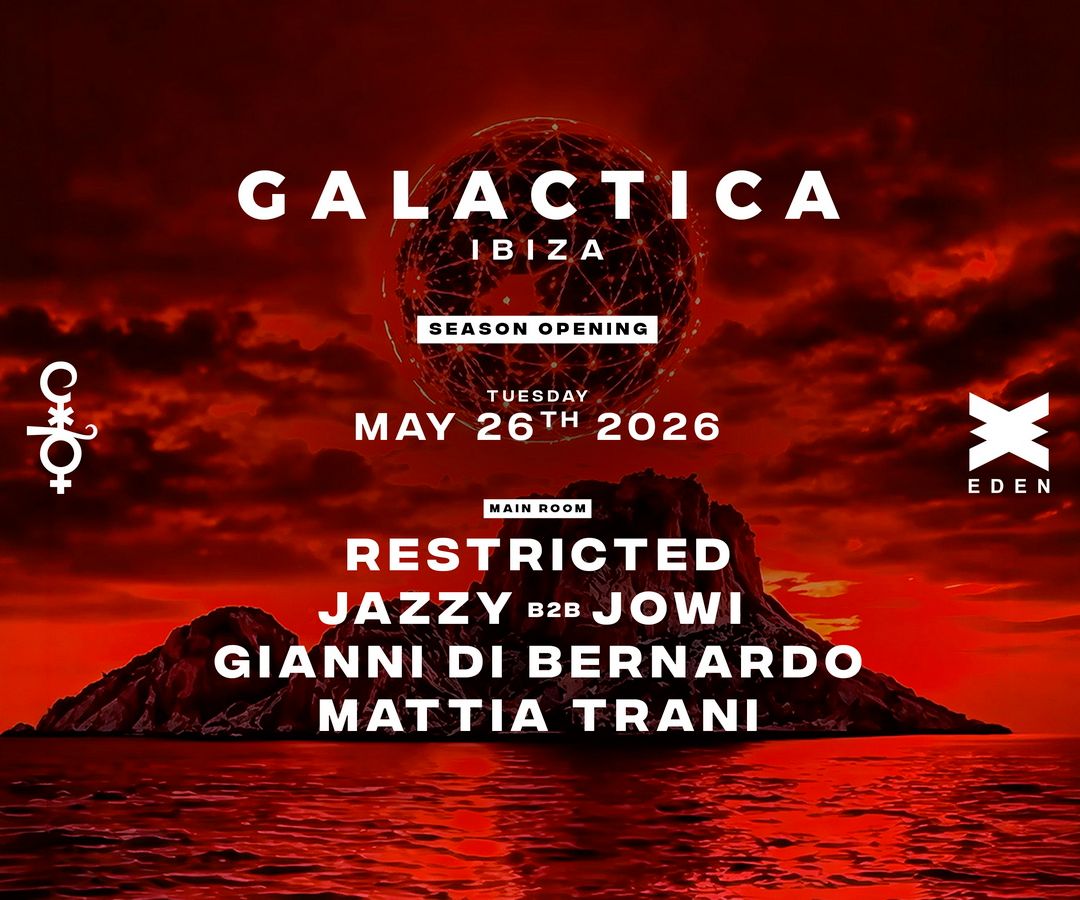 Ibiza welcomes the first night of Galactica at Eden! Prepare for a season of madness with high-intensity techno, immersive scenography, and an international lineup featuring Restricted, Jazzy B2B Jowi, and more. Don't miss this powerful opening party!