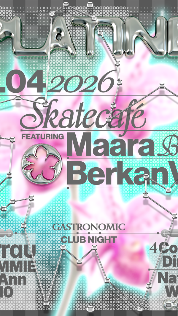 Experience a unique night at Skatecafe with PLATINE, starting with a gastronomic 4-course dinner and natural wines, before transitioning into a vibrant club night across three rooms featuring Maara B2B Berkan V8 and more.