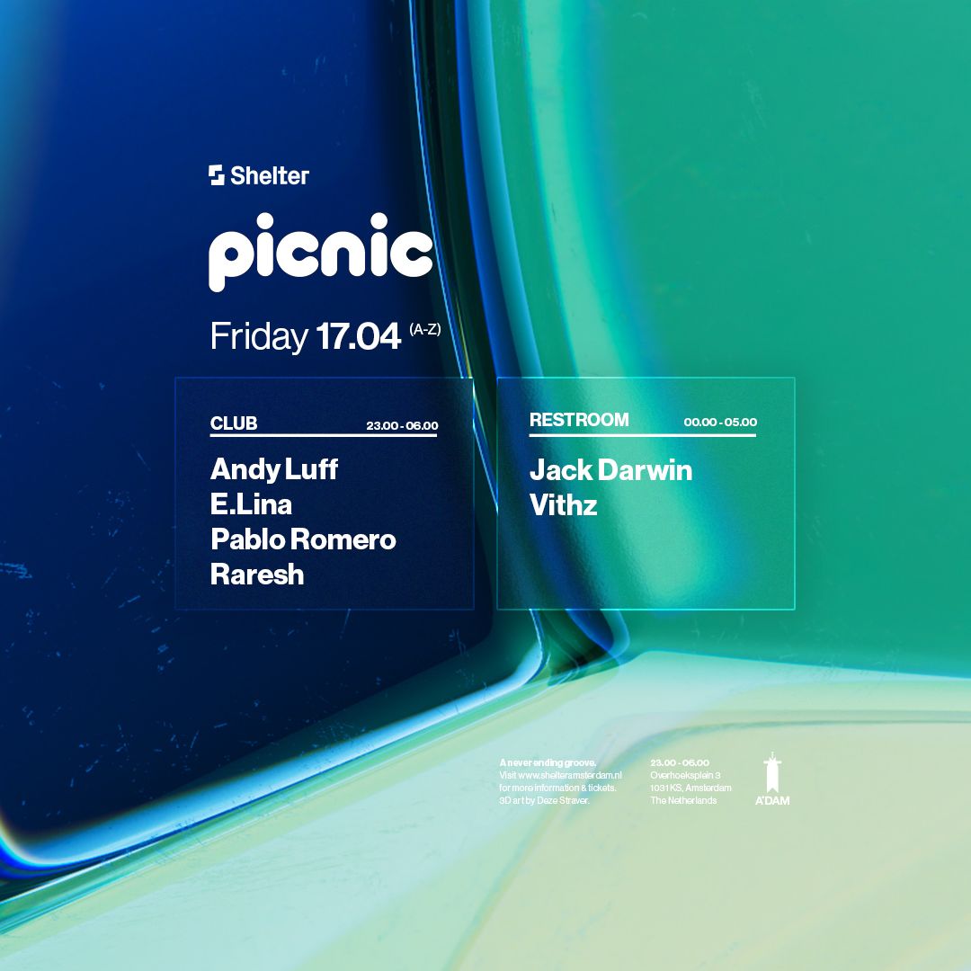 London's Picnic Records takes over Amsterdam's subterranean Shelter. Expect elite underground minimal and house beats, with legend Raresh and Pablo Romero headlining the main room, while Andy Luff b2b E.Lina and others keep the groove flowing until 6 AM.