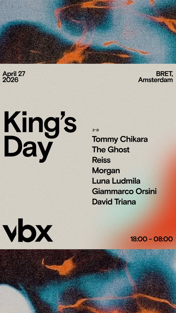 Celebrate King's Day in Amsterdam with renowned underground promoter VBX at BRET. Expect a massive 14-hour marathon of minimal house and techno grooves across indoor and outdoor spaces, capturing the ultimate Dutch holiday spirit.